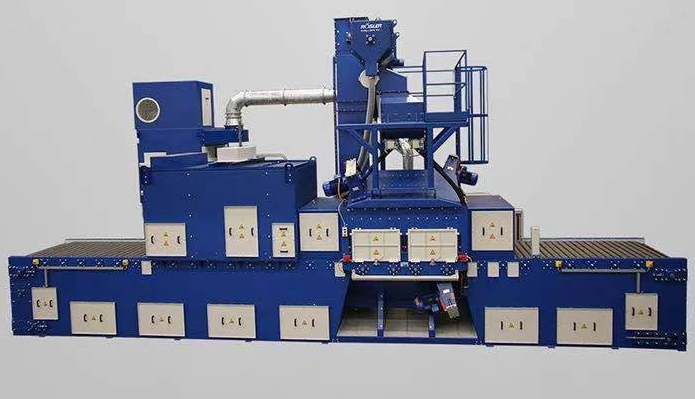 一臺拋丸的設(shè)備要運作起來當(dāng)然應(yīng)該包括送料和出料的裝置了,不管是什么類型的設(shè)備,都會配置相應(yīng)的上料下料裝置,用于對丸砂的輸送和對工件的輸送,一般需要將丸砂輸送到拋丸器中,需要將工件輸送到室體中,完成清理后還要有相應(yīng)的輸出裝置。通過式拋丸機能連續(xù)不間斷工作,對各類鋼材料,如鋼板,鋼材,鋼梁,型鋼,鋼管和鑄鋼件等以一種連續(xù)通過方式進行除氧化皮、清理和預(yù)處理。操作簡便,只需將鋼材料裝載上機器,按下啟動按鈕,經(jīng)過一個短時間的循環(huán)周期后,系統(tǒng)將處理好的材料自動卸下,即完成了整個清理過程,清除掉所有粉塵和殘余丸料。