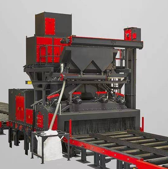 爬架清理機(jī)一般采用通過式拋丸清理,輥道輸送將爬架往拋丸清理室內(nèi)輸送一邊拋丸一邊往拋丸清理室外輸送,整個(gè)工作過程無死角。爬架清理機(jī)的工作原理如下: