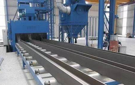 通過式拋丸機(jī),鋼結(jié)構(gòu)或鋼材在清洗過程中通過電控可調(diào)速輸送輥送入清洗機(jī)房的拋射區(qū)域,并且整個(gè)表面受到強(qiáng)烈的沖擊。來自不同坐標(biāo)方向的致密射彈。摩擦,使其上的水垢,銹層及其污垢迅速脫落,鋼的表面獲得具有粗糙度的光滑表面,并且工件在入口和出口的兩側(cè)裝載和卸載。