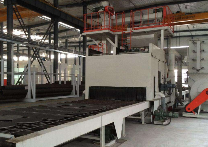 落入鋼材上面的彈丸與銹塵經(jīng)吹掃裝置吹掃,撒落下來的丸塵混合物由回收螺旋輸送到室體漏斗、縱橫向螺旋輸送機匯集于提升機下部再提升到機器上部的分離器里,分離后的純凈彈丸落入分離器料斗中內(nèi),供拋丸循環(huán)使用。通過式拋丸機拋丸清理中產(chǎn)生塵埃,由抽風管送向除塵系統(tǒng),凈化處理后的凈氣排放到大氣中,顆粒狀塵埃被捕捉收集通過式拋丸機主要用于建筑、橋梁等行業(yè)用大型工字型鋼、等較高的鋼結(jié)構(gòu)件消除應力及表面除銹清理。