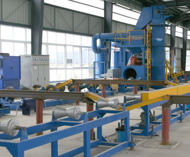 鋼管拋丸機(jī)也叫鋼管內(nèi)外壁拋丸機(jī),它是一種組合清理鋼管內(nèi)外壁的清理機(jī)。鋼管拋丸機(jī)采用多層可換式密封毛刷,能夠?qū)崿F(xiàn)對(duì)彈丸的徹底密封。鋼管拋丸機(jī)是離心懸臂式的高效多功能拋丸器,具有拋丸量大,效率高,葉片更換迅速等優(yōu)點(diǎn),并且整體更換之性能和維修都非常的方便。設(shè)備主要由清理室、拋丸器總成、輸送輥道、上料機(jī)構(gòu)、卸料機(jī)構(gòu)、螺旋輸送器、提升機(jī)和除塵系統(tǒng)及電控系統(tǒng)等主要功能構(gòu)件組成。具有不同的分工,從而進(jìn)行通過拋丸來清理鋼管的外表面等作用效果。