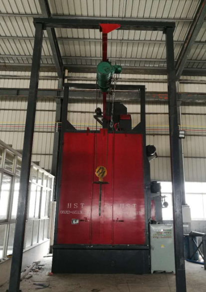 吊鉤式拋丸機(jī)分為單吊鉤和雙吊鉤,吊鉤式拋丸機(jī)由兩個吊鉤裝載工件交替進(jìn)入拋丸清理室內(nèi)。利用拋丸器將0.2~0.8的彈丸拋向工件的表面,使得工件的表面達(dá)到一定的粗糙度,讓工件變得美觀,或者改變工件的壓應(yīng)力提高壽命。