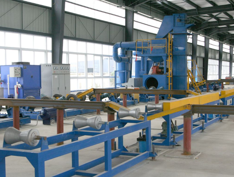 管道防腐拋丸清理機(jī)清洗時(shí),滾筒輸送系統(tǒng)將管道送入拋丸室,分離器、提升機(jī)、螺旋輸送機(jī)、拋丸機(jī)等。是按順序開始的。工件在行走時(shí)被噴丸清理。工件噴丸清理后,滾筒輸送機(jī)系統(tǒng)依次送出清理室和后密封室。根據(jù)不同產(chǎn)品的規(guī)格,還采用西門子光電檢測系統(tǒng),可實(shí)現(xiàn)寬度測量和高度測量,為高質(zhì)量拋丸加固和操作安全提供幫助。