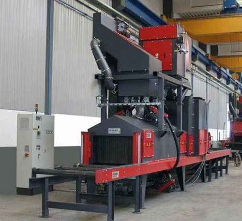 通過式拋丸機主要是由拋丸部分和電氣控制部分來組成的,拋丸的部分當然包括上料和下料的輸送裝置,清理室的部分等,清理室中當然是要有拋丸器裝置的,而電氣控制的部分則主要包括有各種運行的回路,還應(yīng)該包括一些保護的裝置等,具體情況如下: